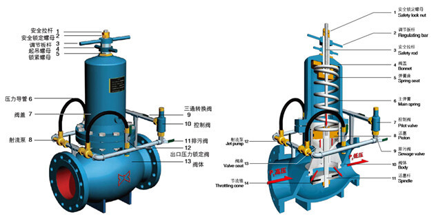 選擇合理的節流錐形狀,可以減小流阻系數及相應的渦流影響;增加主閥調節桿的預壓量,可以增加水的流量而降低通過節流錐過流面的流速(實際上是流阻損失減少)。通過這種方式,我們可以有效降低減壓閥的水流噪聲。