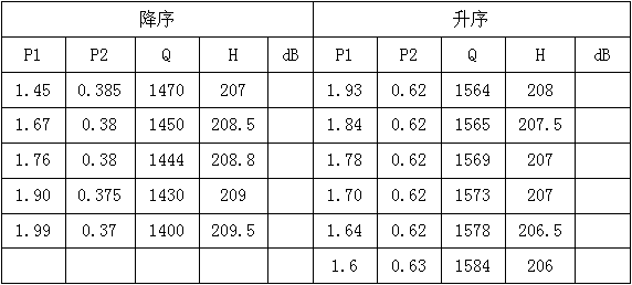 5.2.4、調節F1的開度,使P1值分別降序,即:2.00MPa、1.90MPa、1.80MPa、1.70MPa、1.50MPa。并在每個點記錄P1值、P2值、Q值。